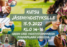 Onko yhdistyksesi kiinnostunut kehittämään Green Carea osaksi toimintaanne ja haluatte osallistua työpajaan, mutta ette ole vielä Green Care Finland ry:n jäsen. Mukaan toimintaan pääsee näppärästi lähettämällä jäsenhakemuslomakkeen. Liity jäseneksi -lomake löytyy: https://www.gcfinland.fi/yhdistys/. |