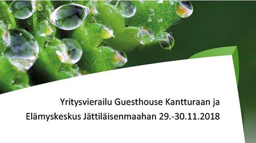 Kantri & Co. - ja Luvoka -hankkeet järjestävät Green Care -teemaisen opintomatkan Vaalaan ja Paltamoon. Opintomatkan aikana tutustutaan Guesthouse Kantturaan ja Elämyskeskus Jättiläisen maahan. Matkaan lähdetään Kainuun ammattiopiston minibusseilla Seppälästä (Kirkkoahontie 115, Kajaani) torstaina 29.11. klo 16.30 ja paluu takaisin samaan paikkaan perjantaina 30.11. klo 16.00 mennessä.