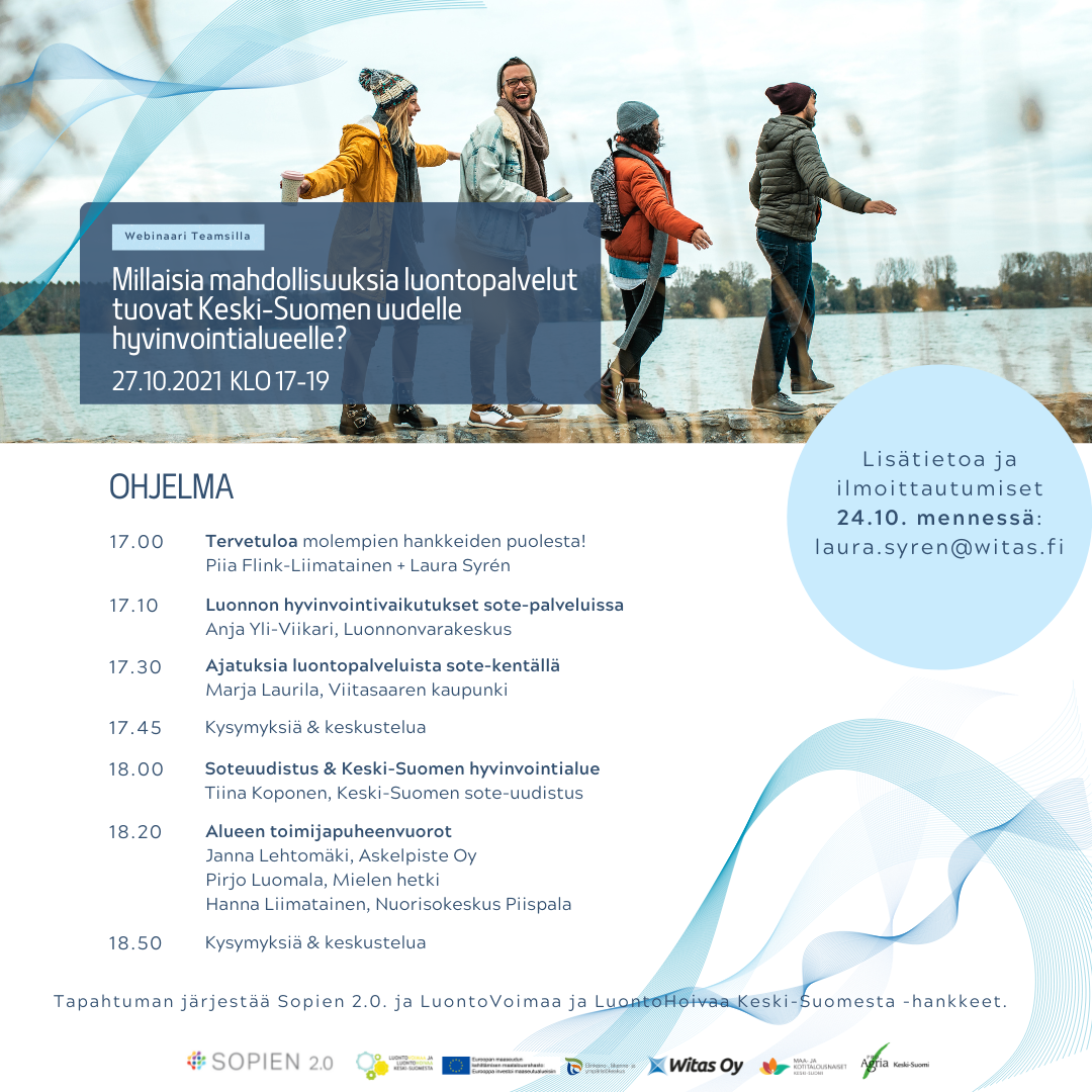 Sopien 2.0. ja LuontoVoimaa & LuontoHoivaa Keski-Suomesta -hankkeet järjestävät webinaarin yhteistyössä. Webinaari järjestetään Microsoft Teams -ohjelmalla, johon ilmoittautuneet saavat osallistumislinkin. Webinaari on maksuton!