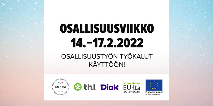 Sokra-koordinaatiohanke toivottaa kaikki osallisuudesta kiinnostuneet lämpimästi tervetulleiksi helmikuussa järjestettävän osallisuusviikon työpajoihin. Ilmoittaudu sinua kiinnostaviin pajoihin 6.2. mennessä.