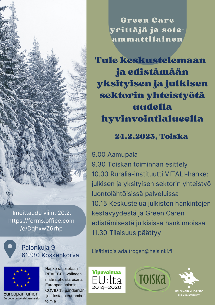 VITALI-hankkeen työpaja 24.2.2023 Green Care-yrittäjille ja julkisen sektorin hankkijoille