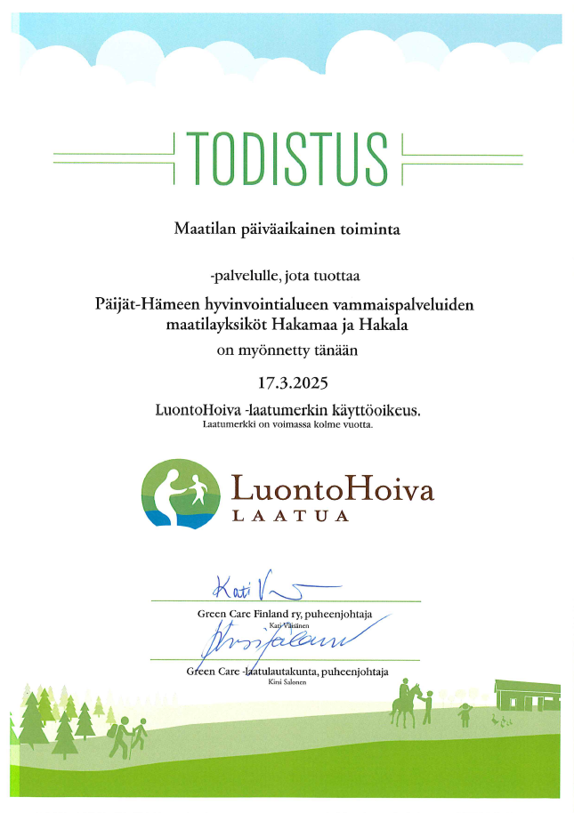 Etusivu Palveluntuottajat » Palvelut » Maatilayksiköt Hakamaa ja Hakala, Päijät-Hämeen hyvinvointialue