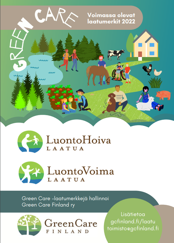 LuontoVoiman ja LuontoHoivan laatumerkki kertoo, että kyseessä on ammattitaitoisesti ja vastuullisesti toteutettu luontoperustainen (esim. eläin-,maatila-, luonto- tai puutarha-avusteinen) palvelu, jossa noudatetaan Green Care -toimintaperiaatteita ja -laatukriteerejä.