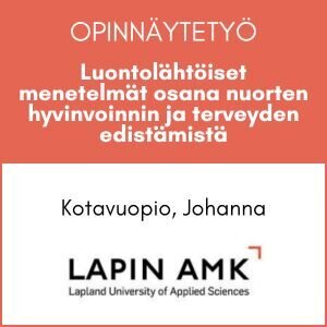 Opinnäytetyön aiheena oli luontolähtöisten menetelmien hyödyntäminen osana nuorten hyvinvoinnin ja terveyden edistämistä. Luontosuhteen kehittyminen voi osaltaan tukea nuorten saamaa hyvinvointia luonnosta ja luontosuhteen positiiviset vaikutukset nousivat esille pitkän aikajakson kuluessa. Lisäksi luontolähtöiset menetelmät tukivat luontosuhteen säilymistä ja luontosuhde puolestaan ylläpiti kontaktia luontoon. Lue lisää