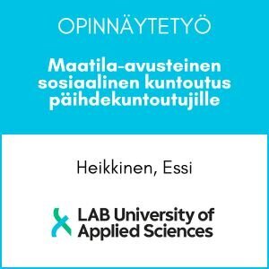 Opinnäytetyössä selvitettiin maatila-avusteisuuden sopivuutta sosiaalisen kuntoutuksen toteuttamismenetelmäksi päihdekuntoutujille. Maatila-avusteisen menetelmän tarjoama tuki on yhtäläistä sosiaalisen kuntoutuksen tavoitteiden kanssa. Tällaisella toiminnalla voidaan vaikuttaa esimerkiksi osallisuuden tunteen lisääntymiseen, syrjäytymisen ehkäisyyn ja työvalmiuksien paranemiseen. Lue lisää