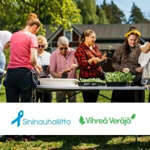 Sininauhaliiton Vihreä Veräjä tarjoaa sote-järjestöille mahdollisuuden käynnistää ja kehittää omaa luontotoimintaansa. Tavoitteena on, että järjestöt voivat tarjota hyvinvointia lisääviä luontokokemuksia vaikeissa elämäntilanteissa oleville ihmisille. Lue lisää
