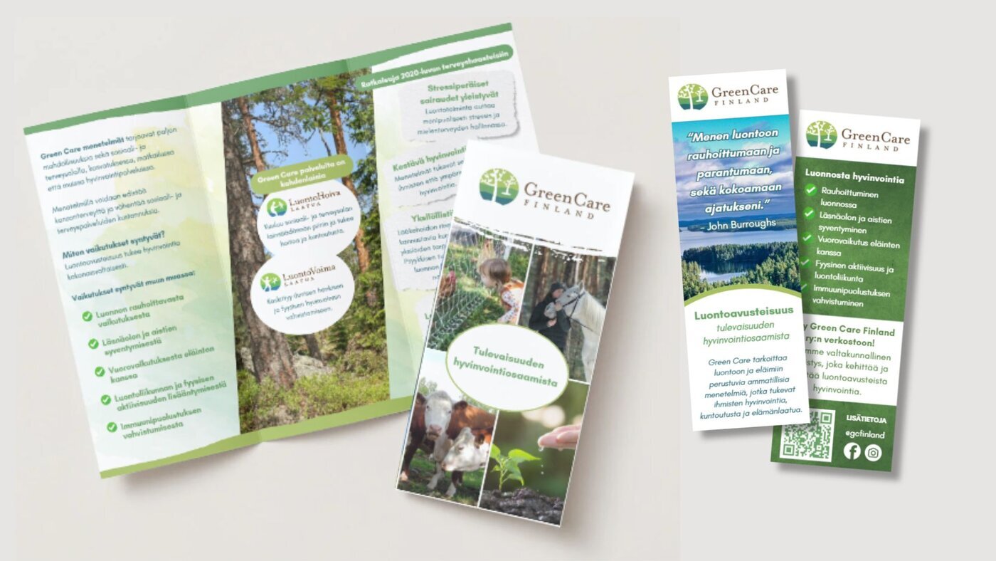 Green Care Finland ry:n yleisesitteitä ja kirjanmerkkejä on saatavilla yhdistyksestä.